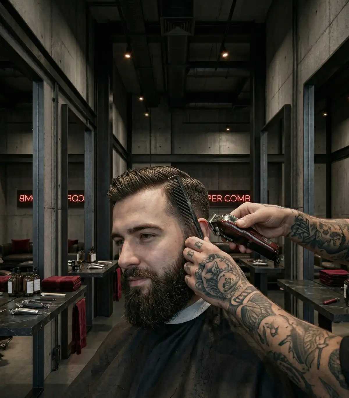 Odkryj prawdziwe rzemiosło w ekskluzywnym klimacie. Usiądź w skórzanym fotelu, napij się dobrej whisky i pozwól nam zadbać o Twój perfekcyjny wizerunek w samym sercu {{MIASTO}}.
